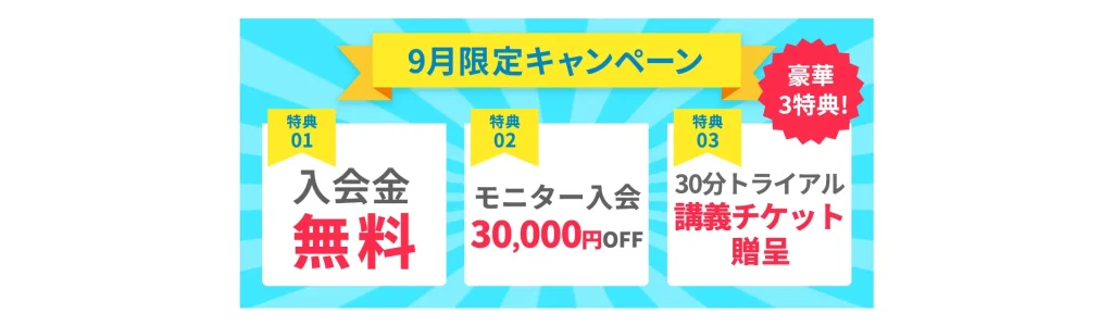 キャンペーン | ![]() 適用で受講料が実質0円 |
