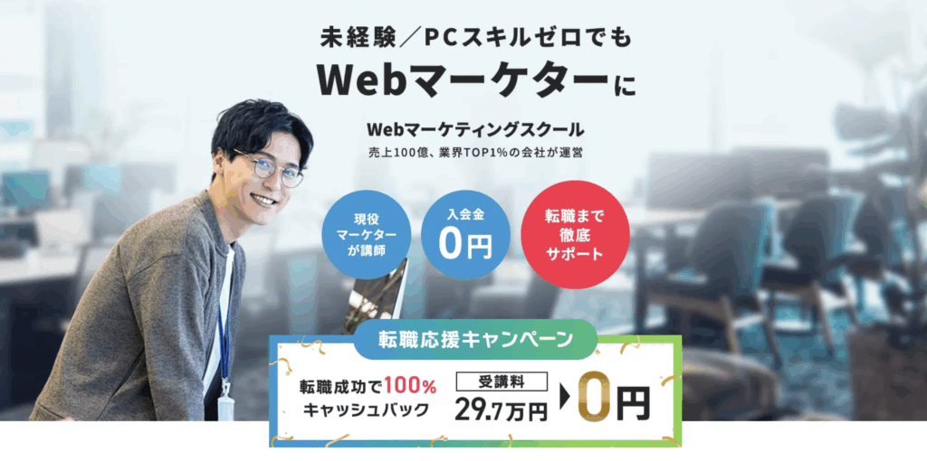キャンペーン | 転職応援キャンペーン適用 で受講料が実質0円 |