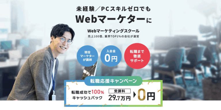そしてなんと、今だけ転職に成功すると受講料が100%キャッシュバックされるキャンペーンを実施しています!